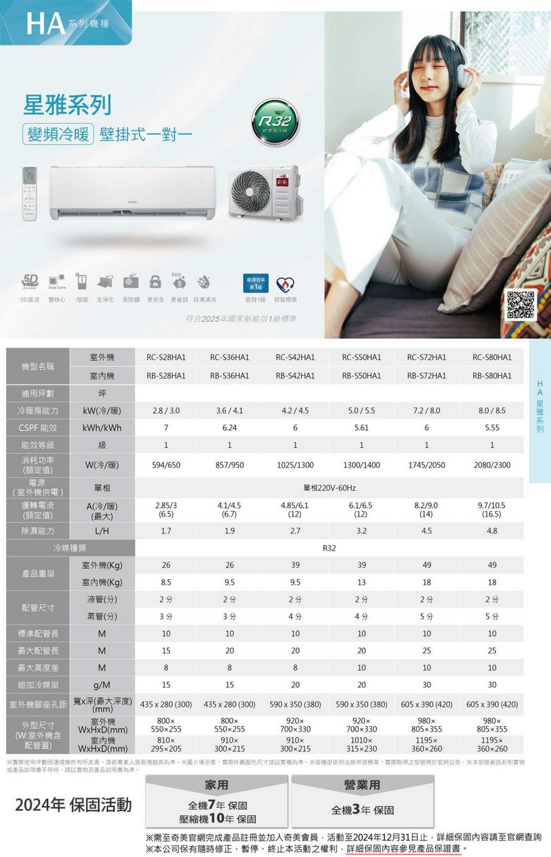 ◎型號:RB-S72HA1 (室內機) / RC-S72HA1 (室外機)