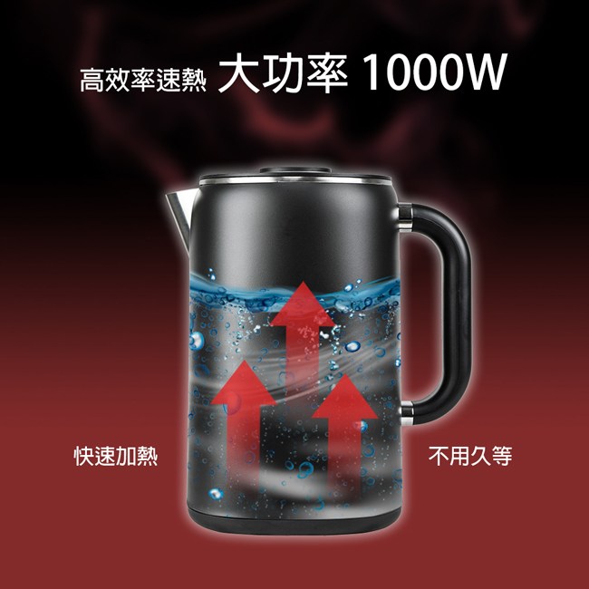 MATRIC 松木家電 不鏽鋼雙層防燙快煮壺 1.5公升大容量 304食用級不鏽鋼 1000W大功率 雙層外殼保溫防燙設計 MG-KT1507