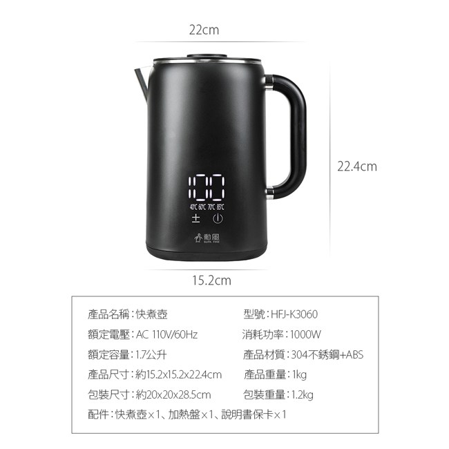 【勳風】1.7公升智能觸控快煮壺 HFJ-K3060