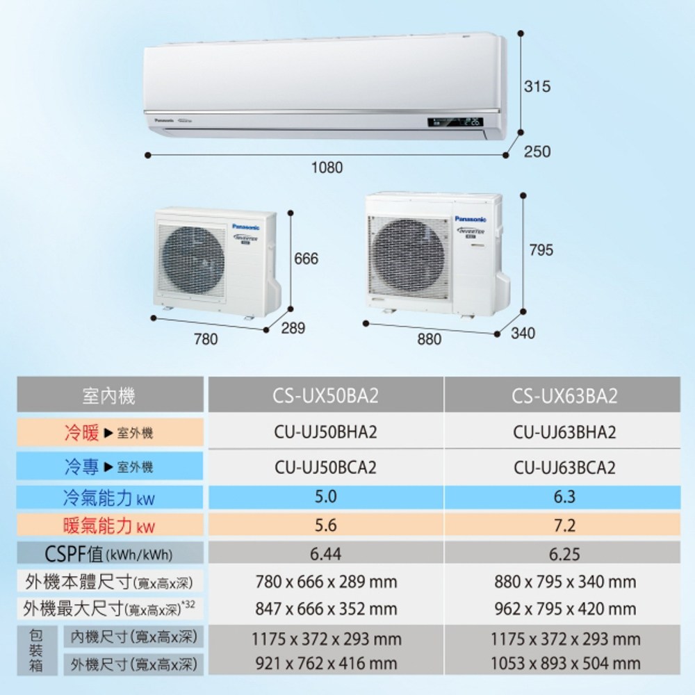 Panasonic 1-1變頻冷暖分離式冷氣 CS-UX/CU-UJ63BHA2
