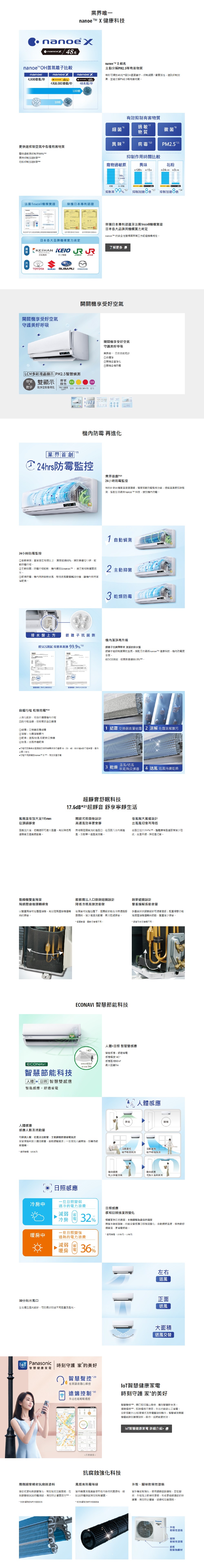 (含標準安裝)Panasonic國際牌變頻冷暖分離式冷氣5坪CS-UX36BA2-CU-UX36BHA2