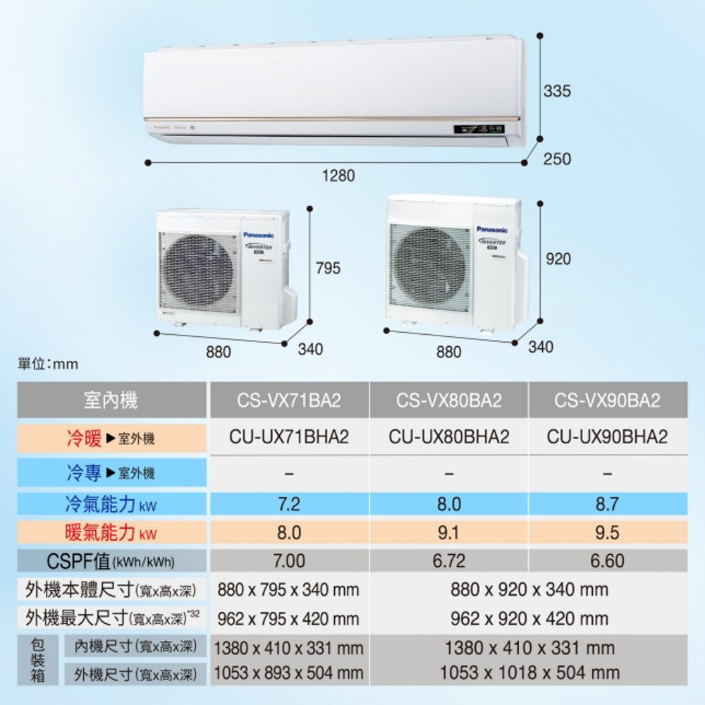 Panasonic 1-1變頻冷暖分離式冷氣 CS-VX/CU-UX80BHA2