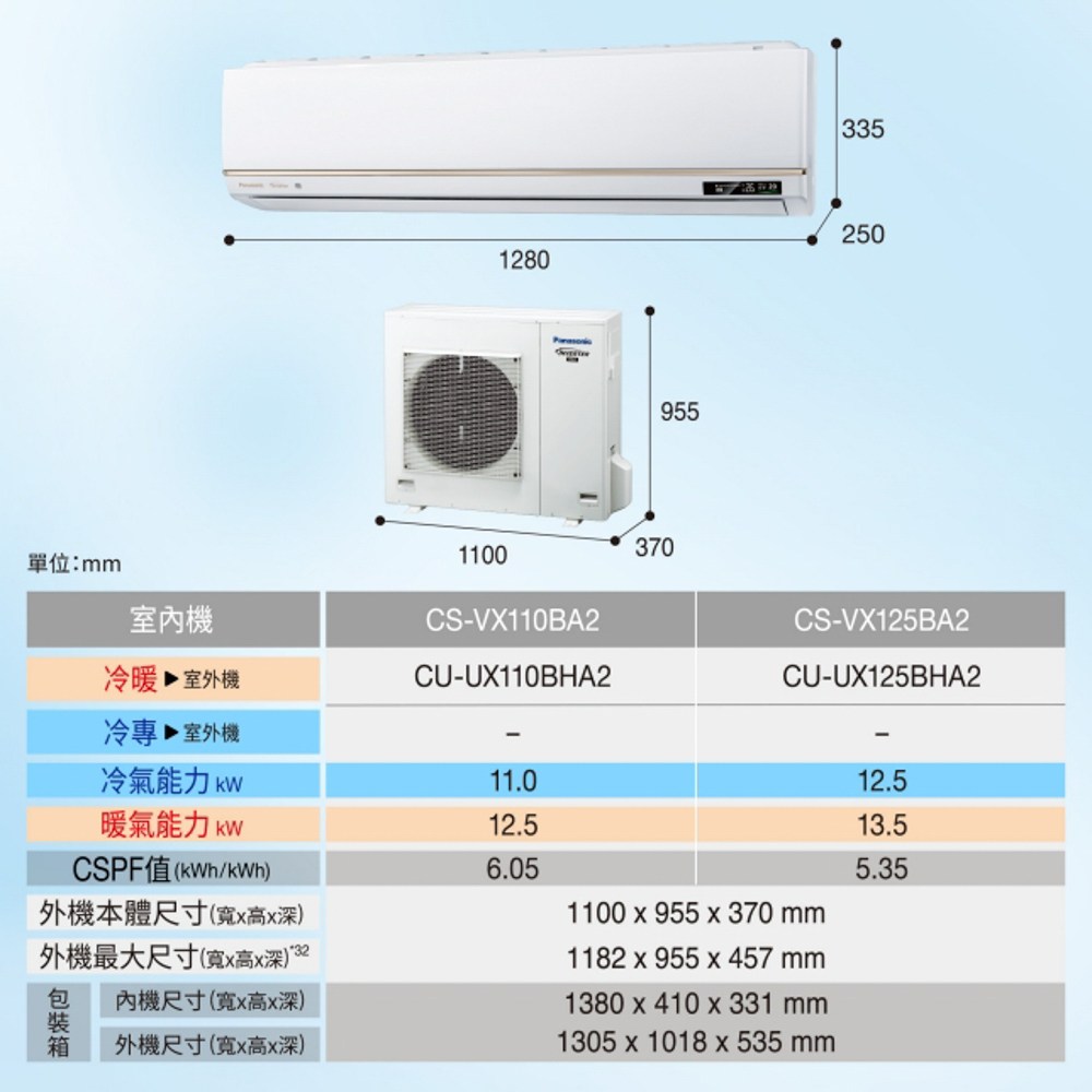 Panasonic 1-1變頻冷暖分離式冷氣 CS-VX/CU-UX125BHA2