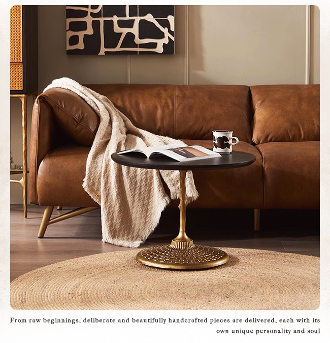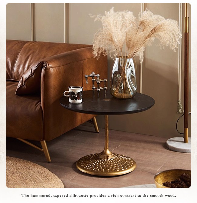 進入屋內,映入眼簾的圓茶几,向朋友訴說您的品味。細膩的天然木紋桌面,如水波漣漪,蘊藏歲月沉澱的靜謐之美。手工鍛打金屬桿,工匠錘擊實心金屬,不對稱的美感,襯托奢華脫俗的風格,點亮空間高貴的感受。古典金屬底座,網格雕塑的腳座,致敬古羅馬建築樣式,宛若獨一無二的藝術品,僅此一件。專注細節的設計,您選擇的不單單是圓茶几,而是生活的風格,令人印象深刻或是庸俗,取決在您的格調。