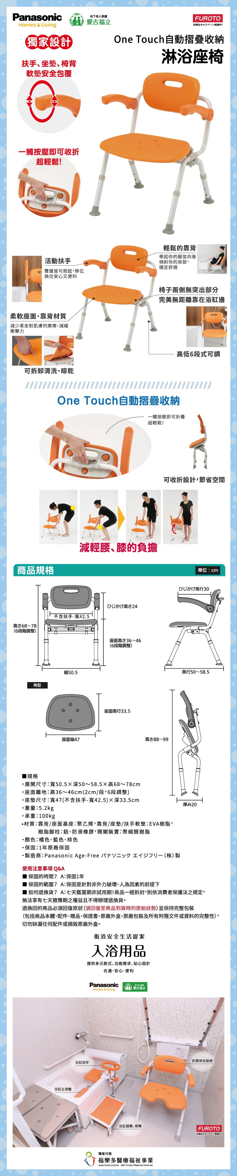 Panasonic 國際牌 一鍵收折洗澡椅|沐浴椅 扶手可掀 方便移乘