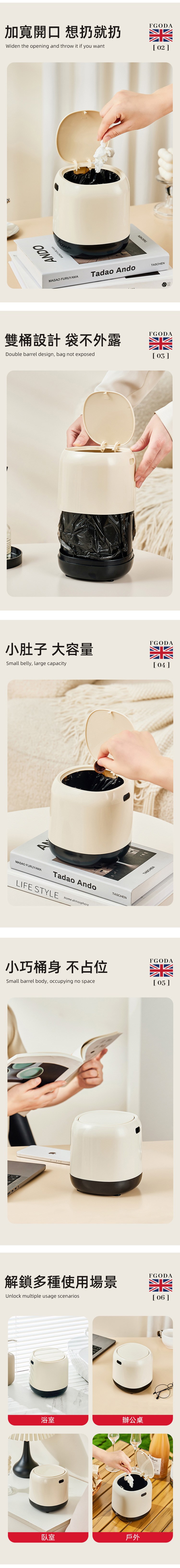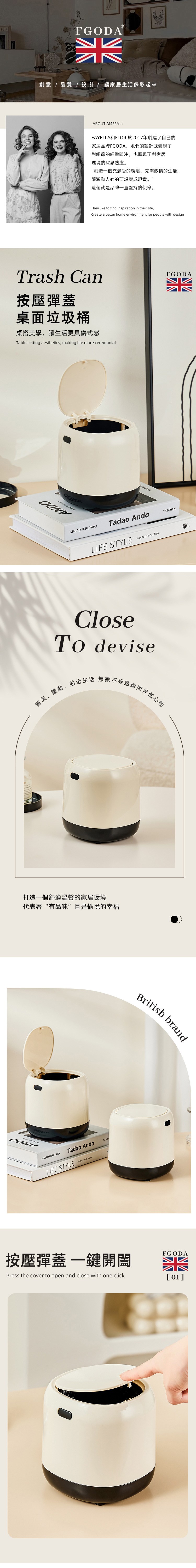 【英國FGODA】桌上型按壓彈蓋式垃圾桶