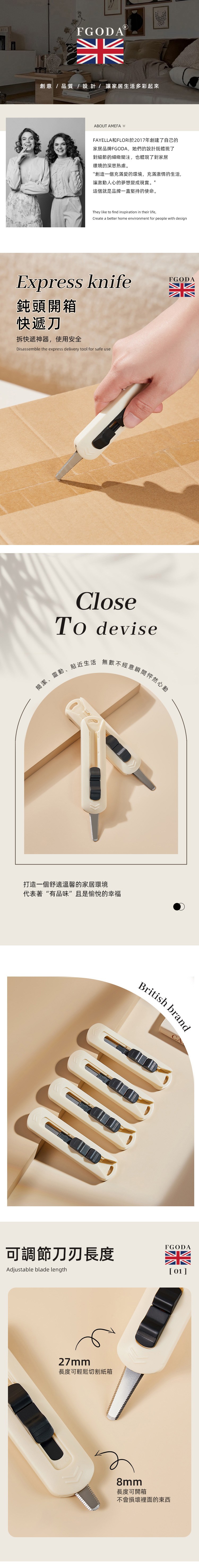 【英國FGODA】奶油風安全開箱刀/拆箱刀