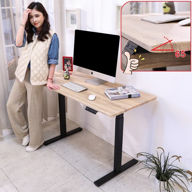 BuyJM MIT低甲醛無銳角無段式電動升降桌(寬130x60公分)/書桌/電腦桌漂流木色