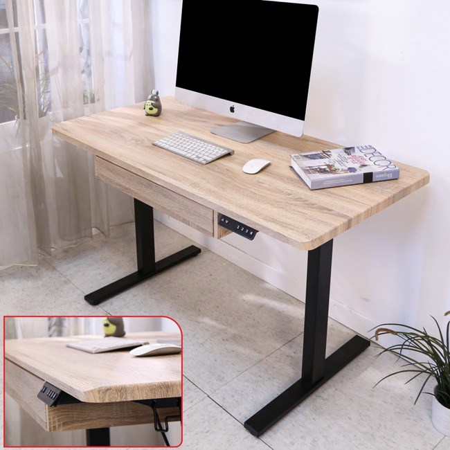 MGSHOP 新電動升降桌140/60CM 電腦桌 辦公桌 書桌 兒童升降桌(楠洋楹木 抽屜款)