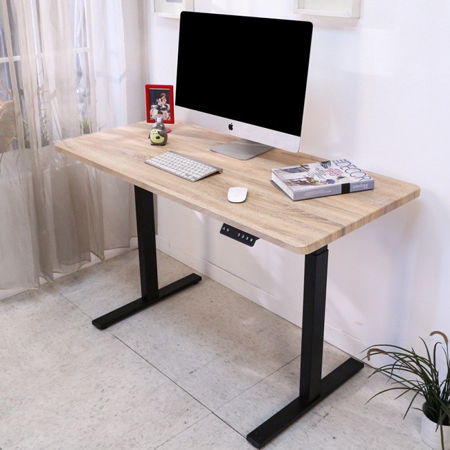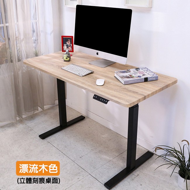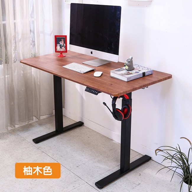 BuyJM MIT低甲醛無銳角無段式電動升降桌(寬130x60公分)/書桌/電腦桌柚木色