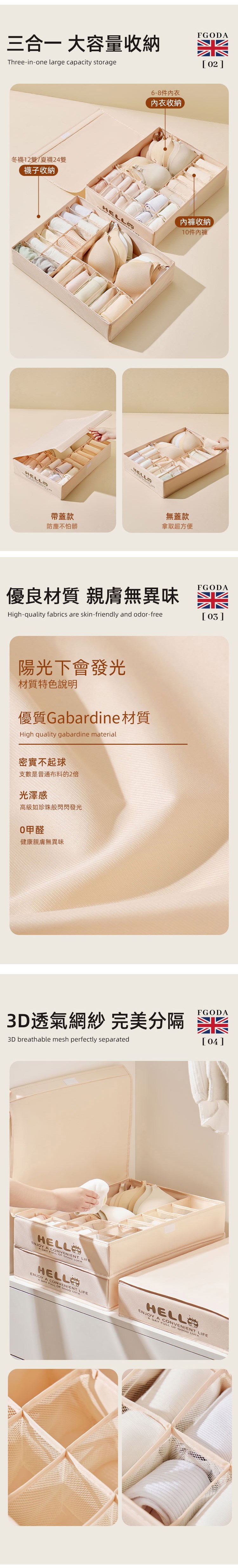 【英國FGODA】布藝折疊式襪子/內衣褲分隔收納盒(附蓋)-3入