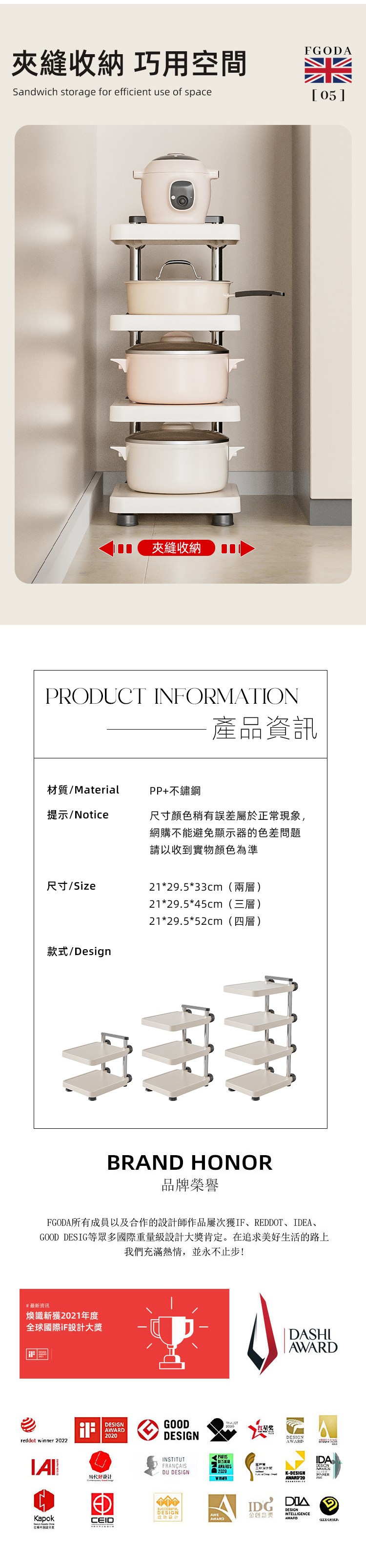 【AOTTO】日式附輪可移動五層廚房置物架(FT-024)