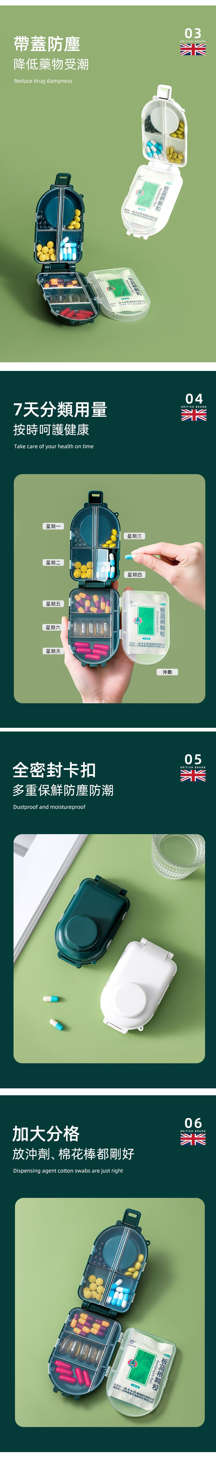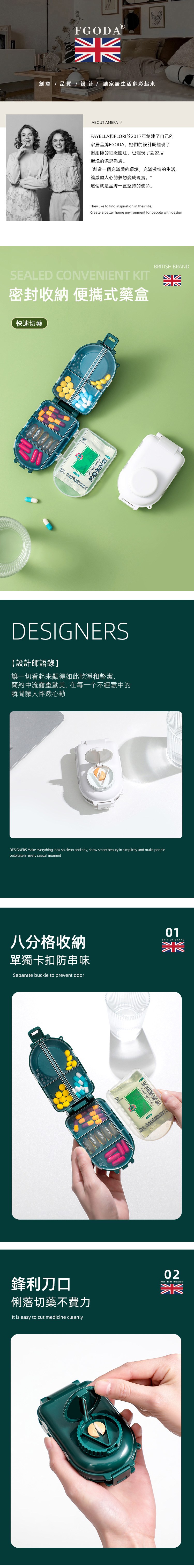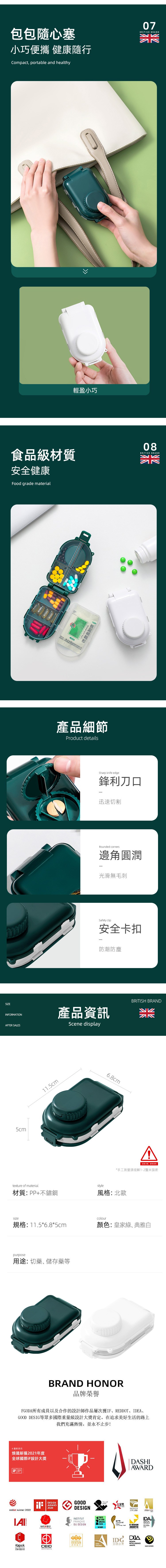 【英國FGODA】便攜式多功能藥盒(附切藥器)-多色可選皇家綠