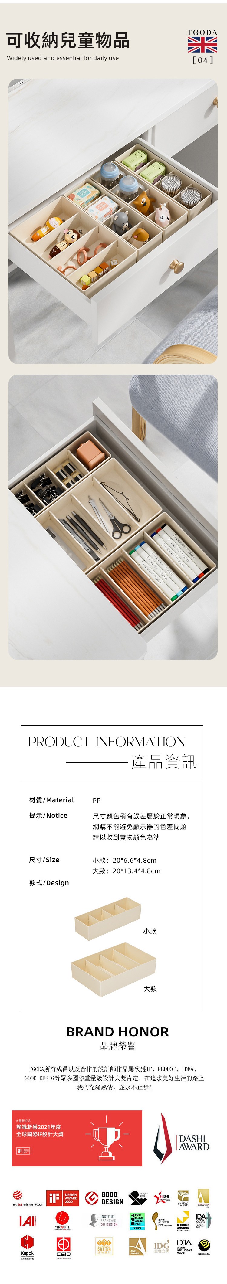【日本霜山】可疊分隔式桌面抽屜霧透PP收納盒-大-3入-送分隔片12入單一規格