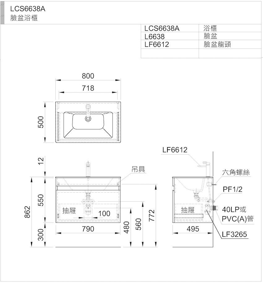 和成 HCG 寬80臉盆浴櫃組 LCS6638-6612