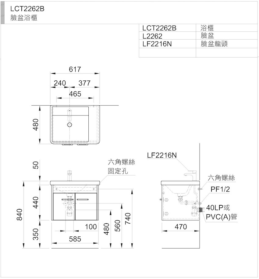 和成 HCG 寬62不鏽鋼臉盆浴櫃組 LCT2262-2216N