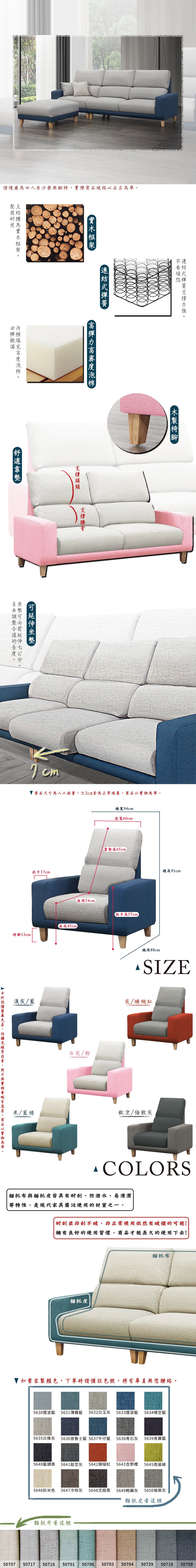 RICHOME 西瑟L型沙發(附靠枕) 沙發 L型沙發 三人沙發 沙龍床 麻布沙發 多人沙發 SF044
