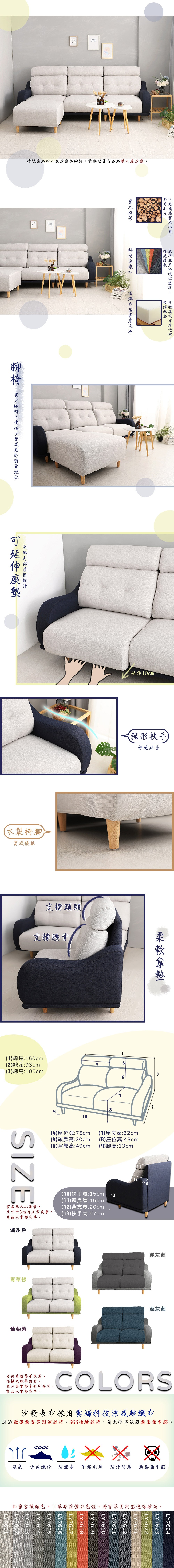 點我下載【本木】海神 貓抓皮親膚功能沙發2人坐濃紺色 (白灰#7602+靛#7624