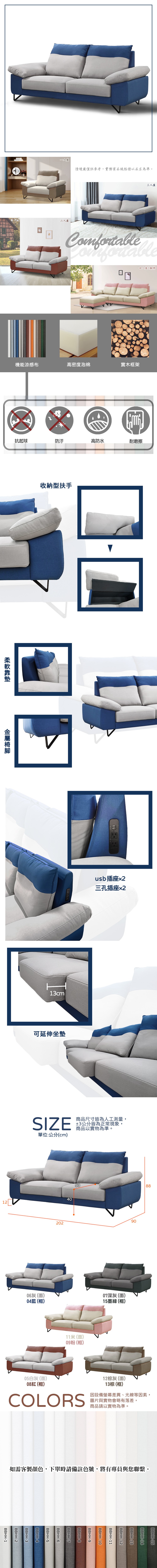 《潔西卡》湖水綠 貓抓皮 L型沙發三人座 腳凳 深灰色 淺灰色 現代 簡約 高背款 客廳 辦公室 台灣製造 【新生活家具】