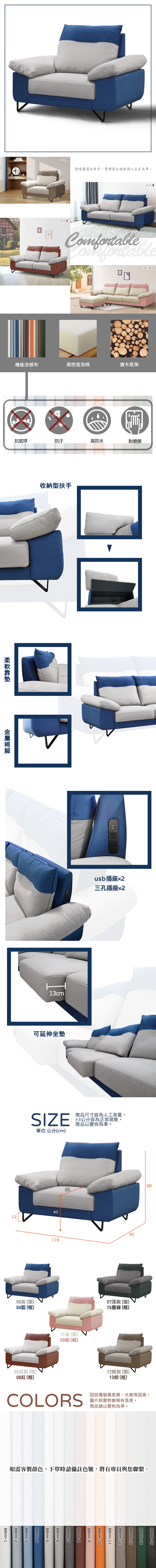 點我下載【本木】凱莉 功能插座收納涼感沙發1人坐棕灰色BBH-12+BBH-13