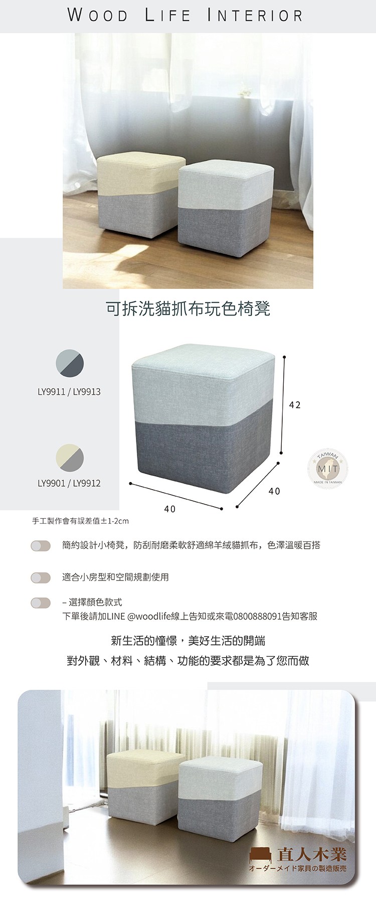 點我下載直人木業-可拆洗貓抓布玩色椅凳(兩色可選)LY9901+LY9912