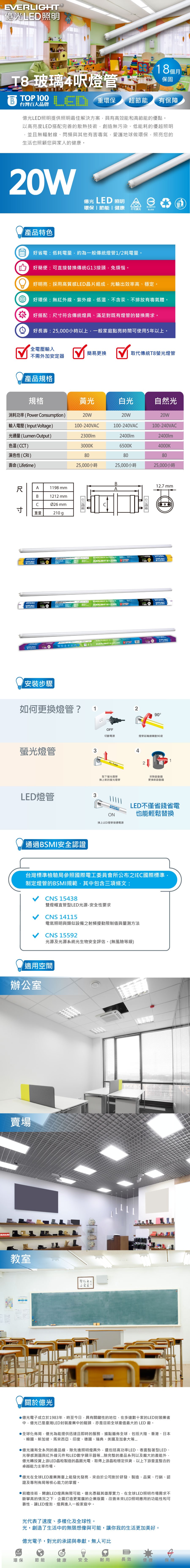 億光超節能T8燈管 20W 4呎(黃光)