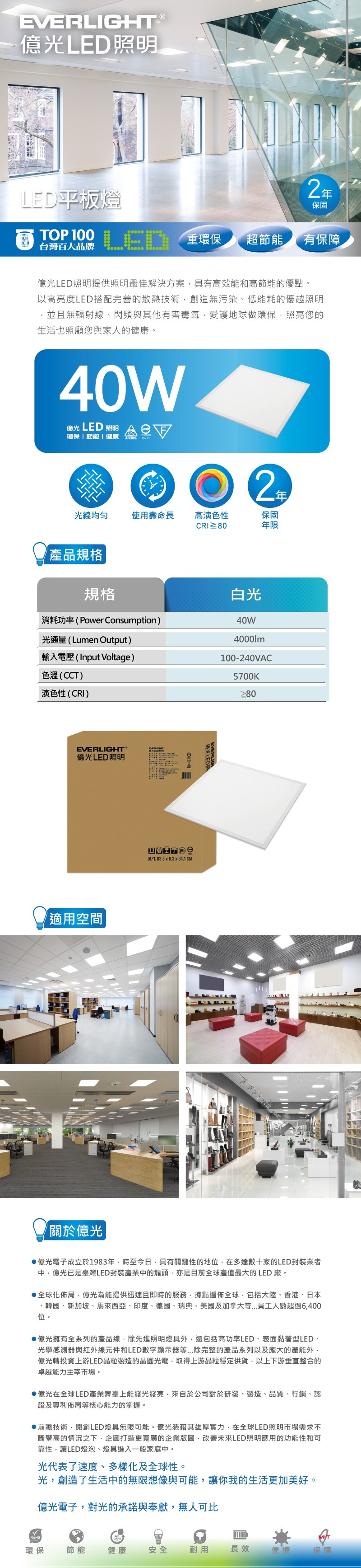 億光 40W LED平板燈 白光 5700K 台灣製