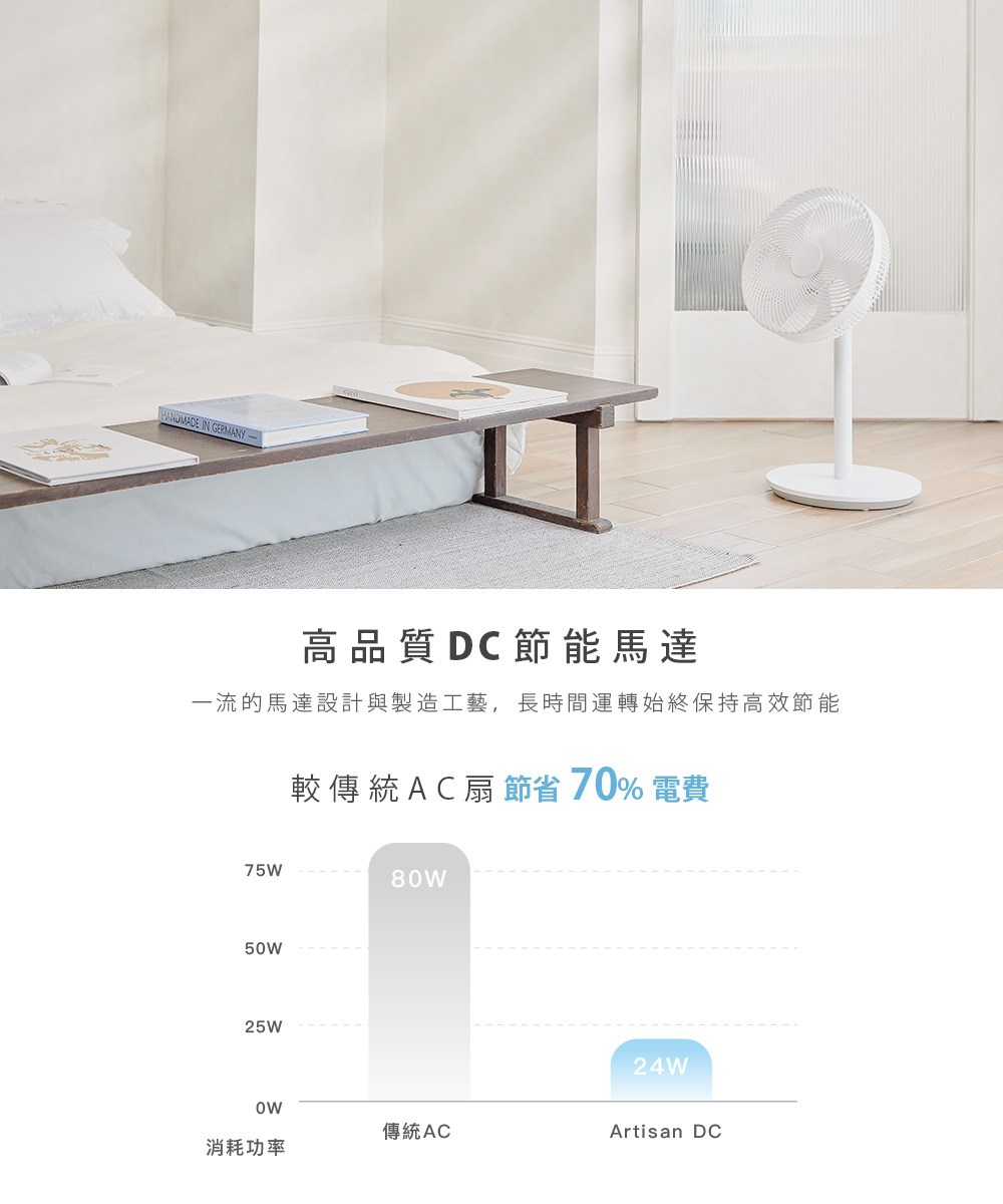 sOlac DC行動風扇,6段風速,左右60°/往上45°/往下5°擺頭,260*H520mm SFT-F07W 白色
