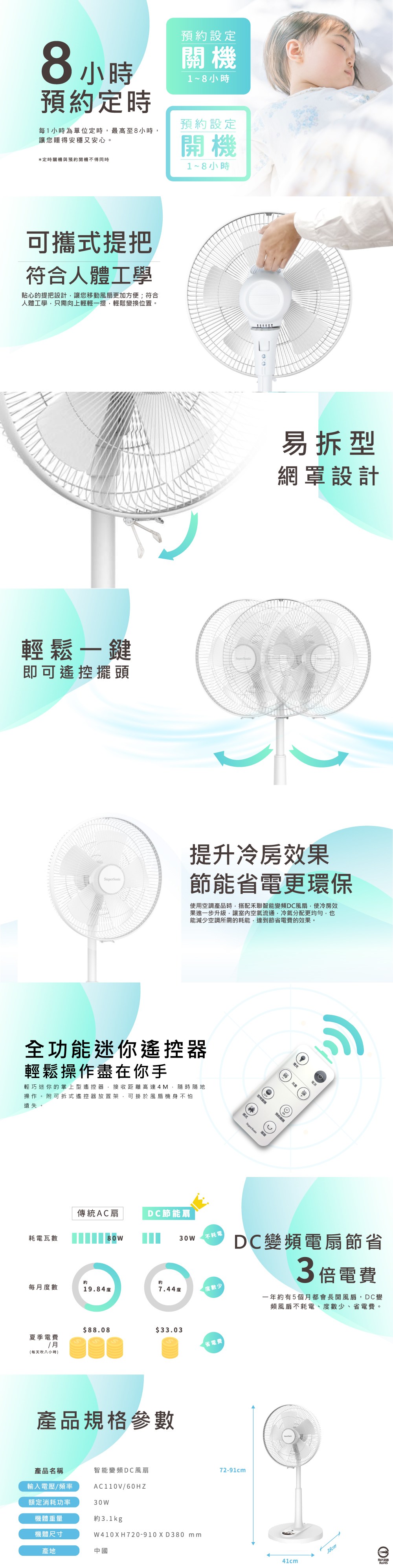奇美 CHIMEI 16吋DC馬達遙控擺頭立扇 /台 DF-16P801