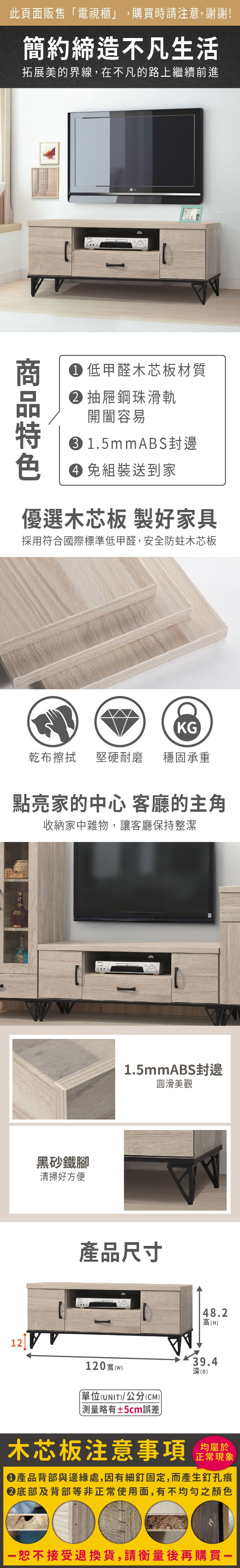 直人木業-LEO北歐風系統板桌面 121公分電視櫃