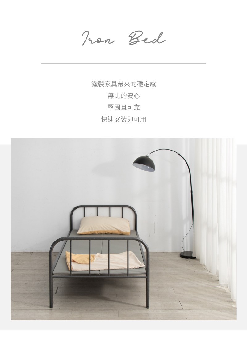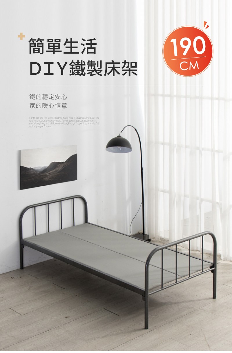 【好氣氛家居】190CM鐵木工藝單人加大DIY床架(午休床 宿舍床 客房床 鐵床)