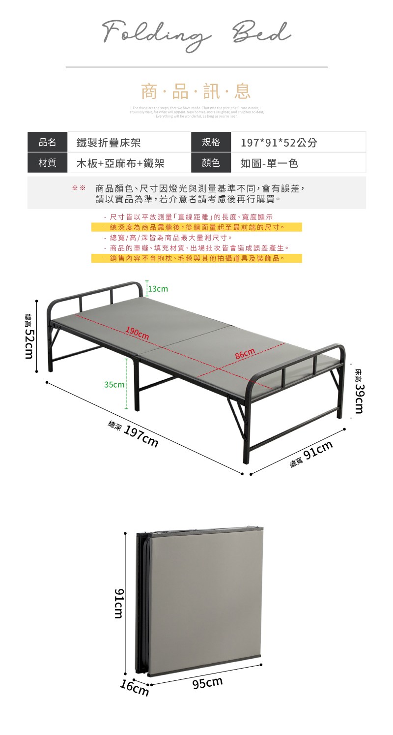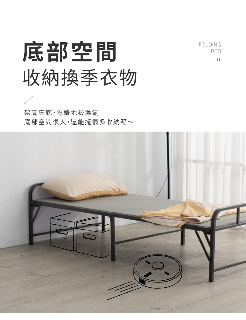 【 好氣氛家居】190CM鐵木工藝單人加大摺疊收納床架(鐵床 床座 單人床 午休床)
