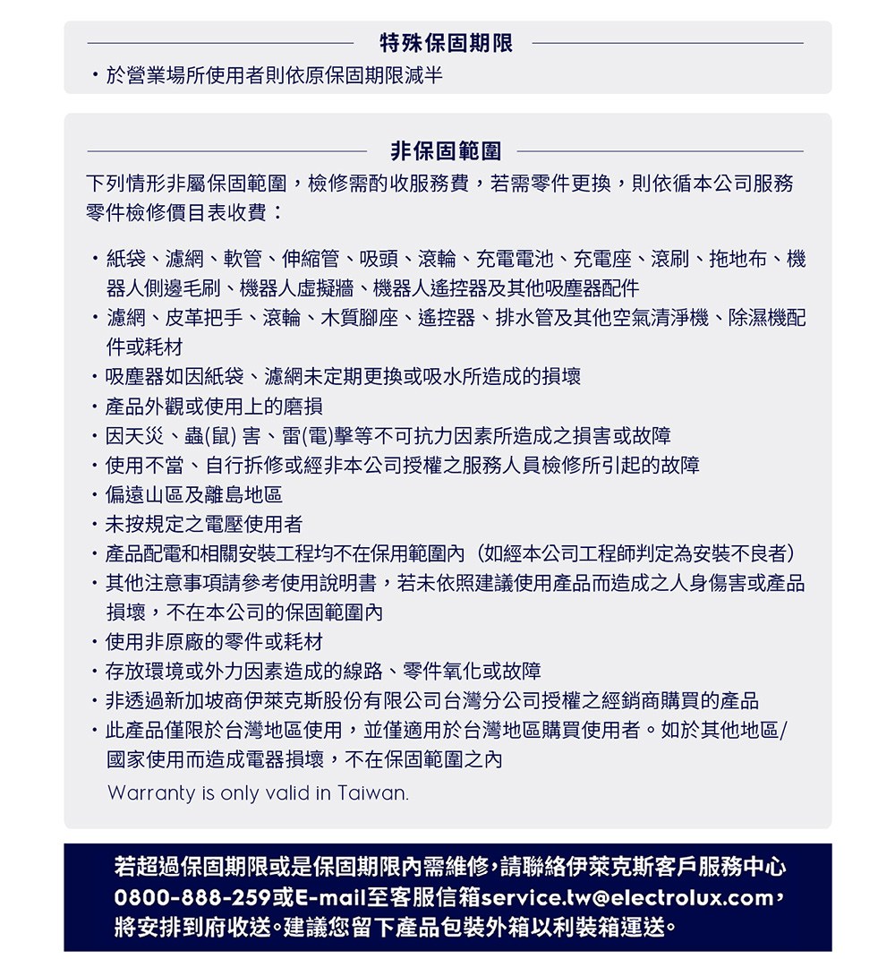 ◎ 須由消費者自行負擔費用: