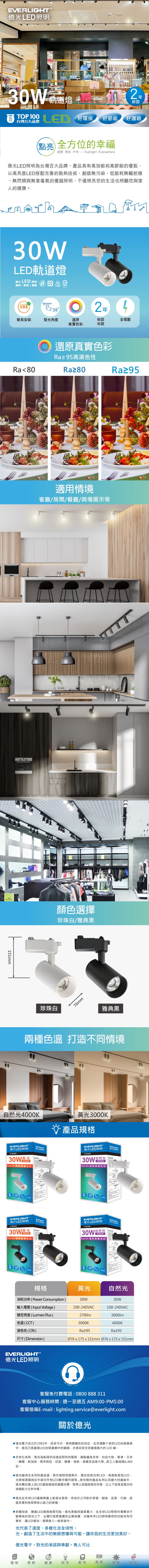 億光30W LED軌道燈 自然光 4000K 珍珠白