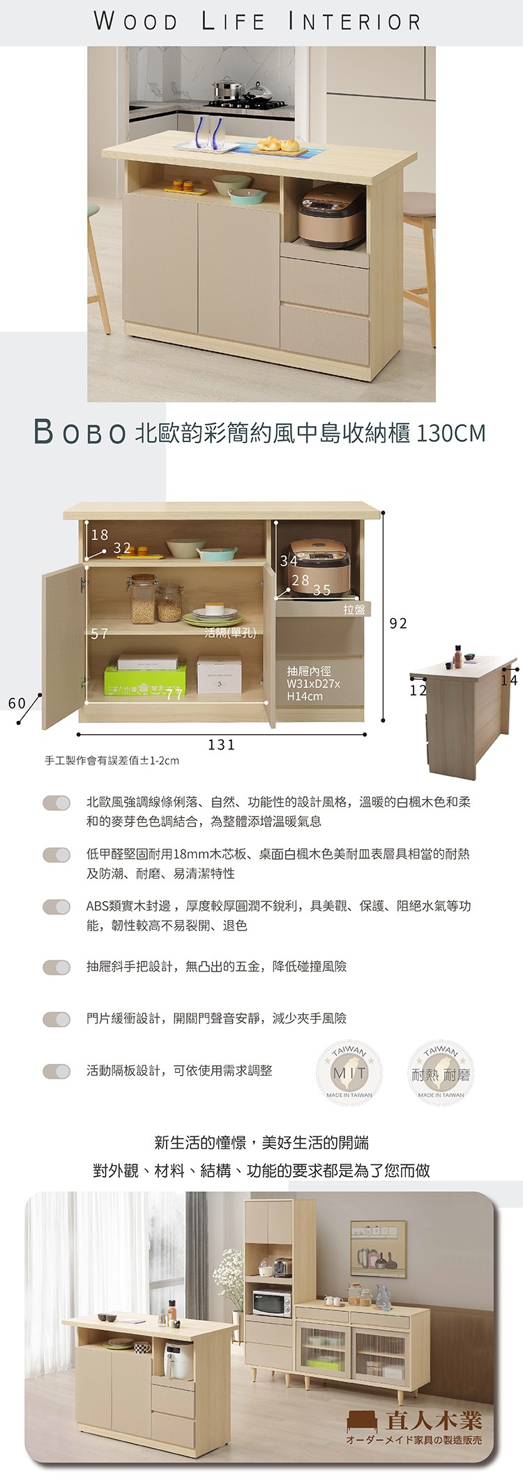 直人木業-BOBO北歐韵彩簡約風中島收納櫃130公分
