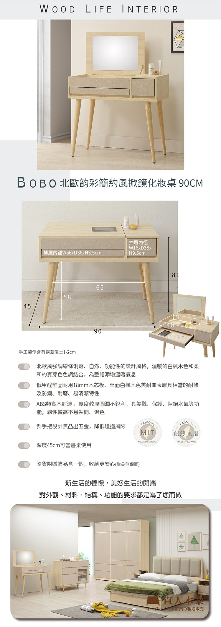 obis 帕特3尺(木面)鏡台(含椅)