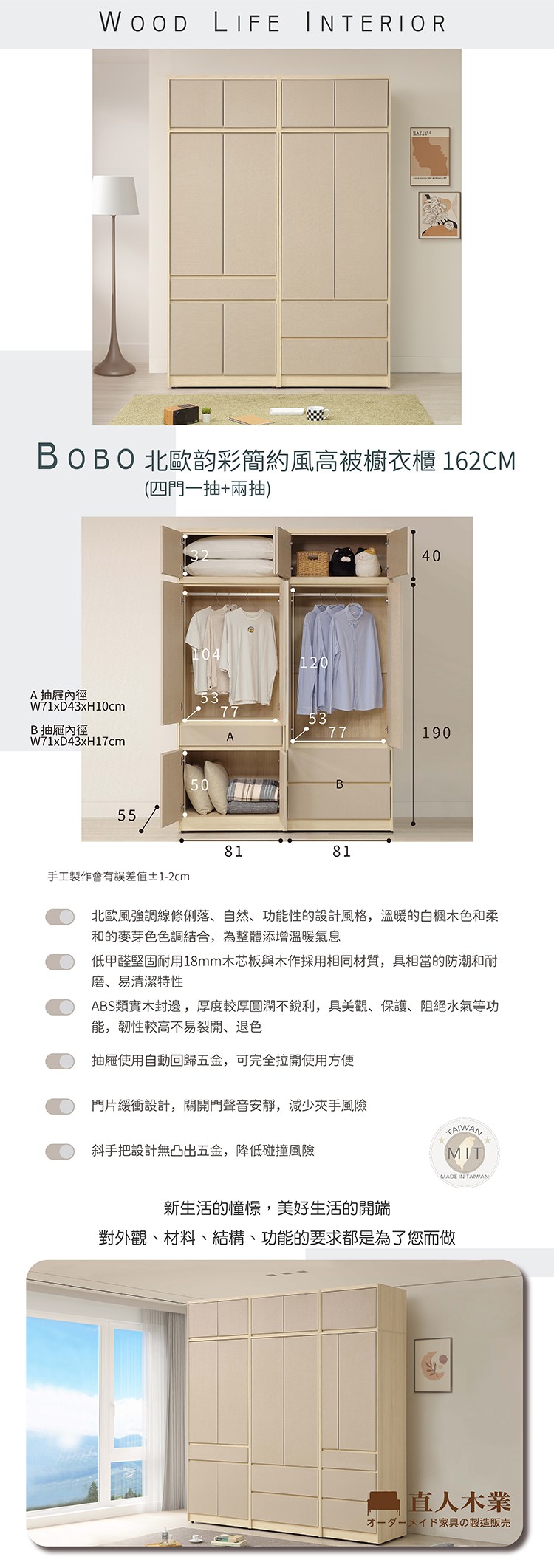 直人木業-TESS淺橡極簡風四抽滑門衣櫃120公分