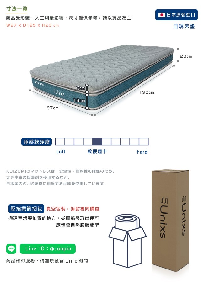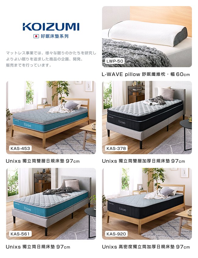 【KOIZUMI】Unixs獨立筒雙層日規床墊KAS-453‧幅97cm