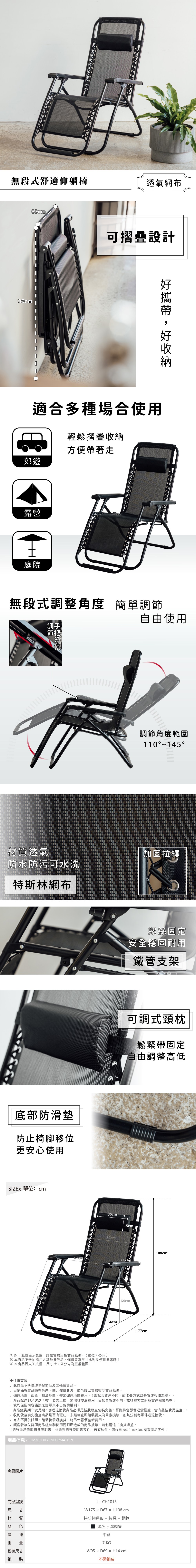 【AOTTO】無段式高承重零重力透氣休閒躺椅(LC-003)