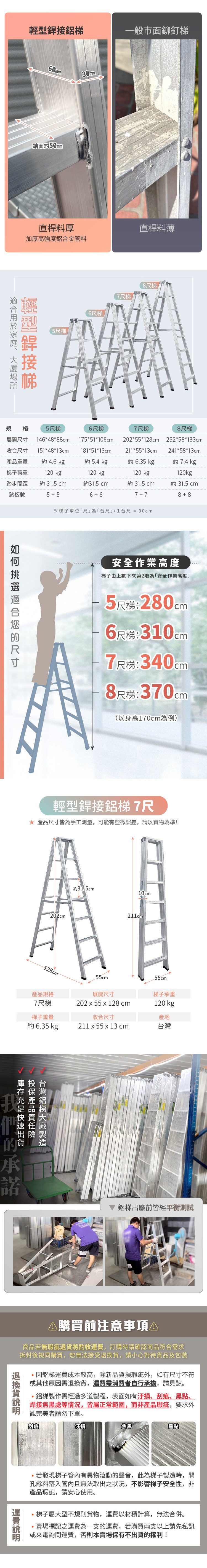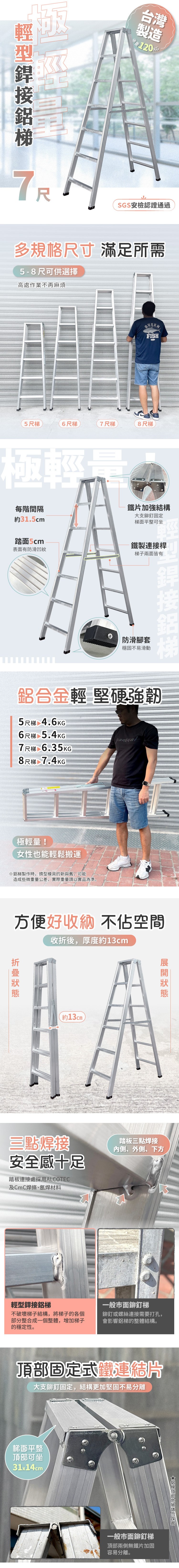 【大船回港】輕型銲接鋁梯 7尺