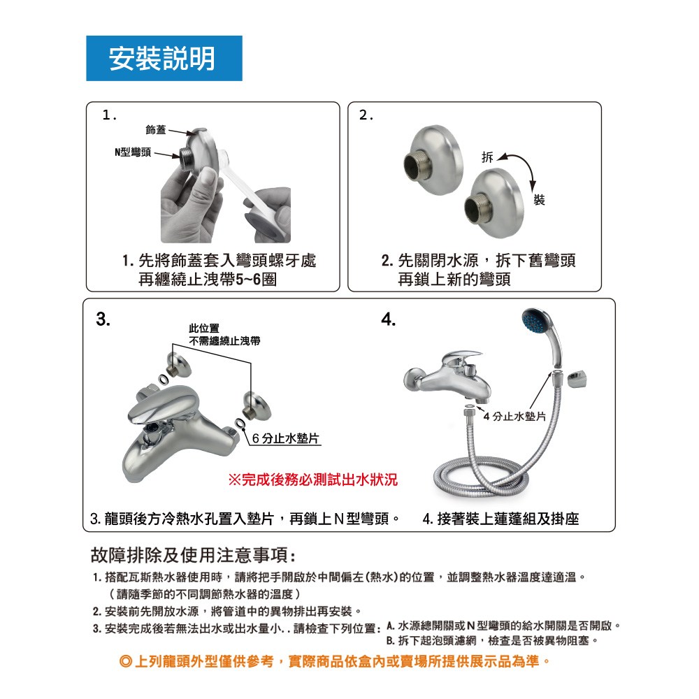 泰衛 (附蓮蓬頭)台灣製精密陶瓷軸心低鉛浴室沐浴龍頭組(1入) 水龍頭 出水龍頭 浴室龍頭