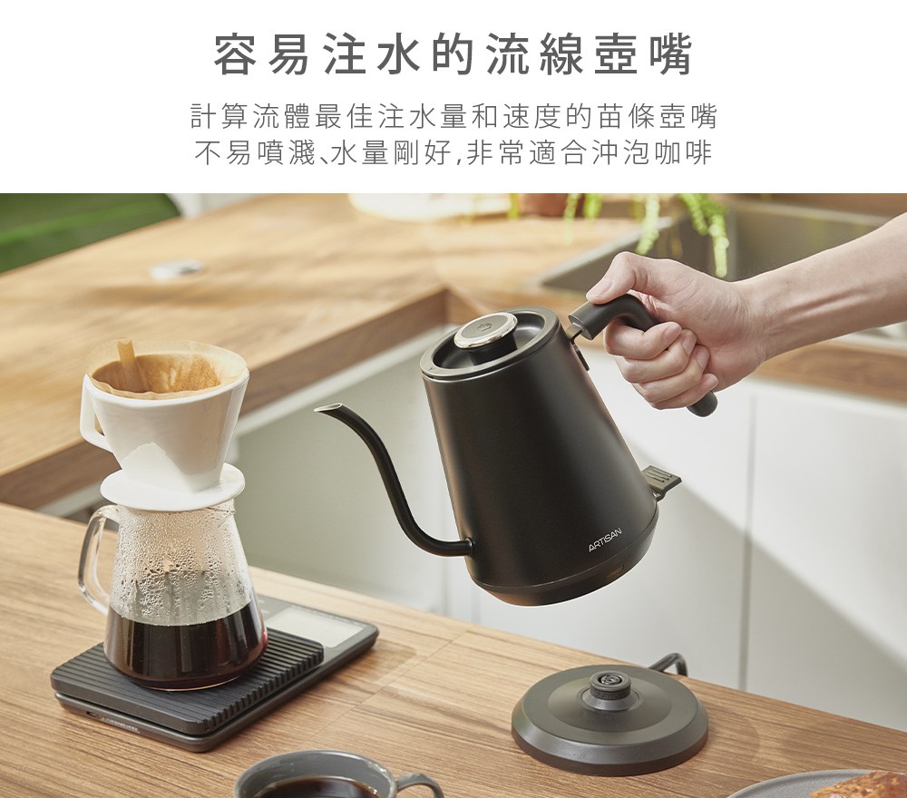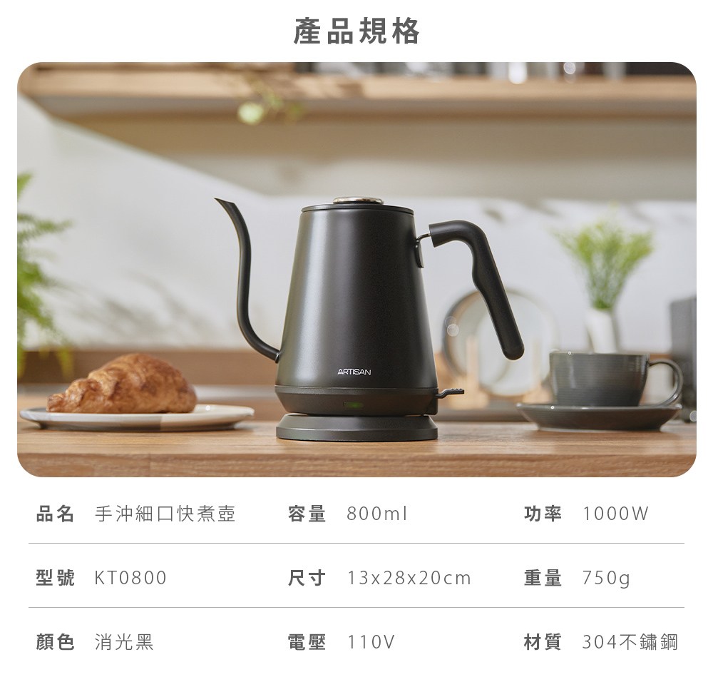 ARTISAN 0.8L溫控手沖細口快煮壺 消光黑 KT0801 原廠