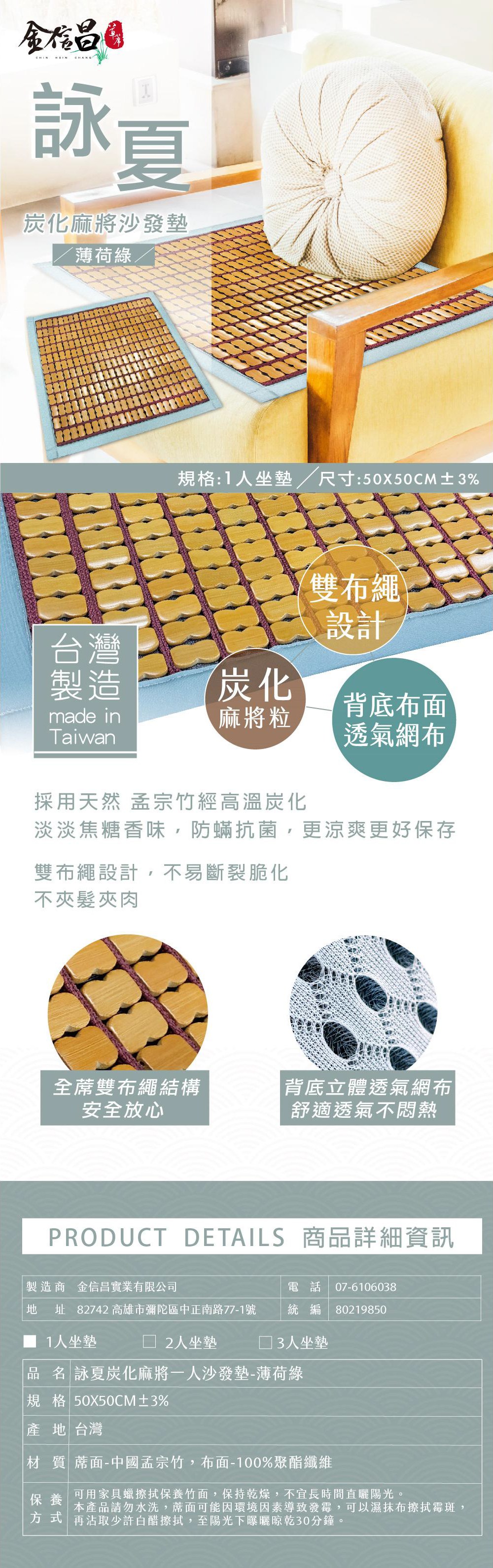 詠夏炭化麻將蓆二人沙發墊 薄荷綠