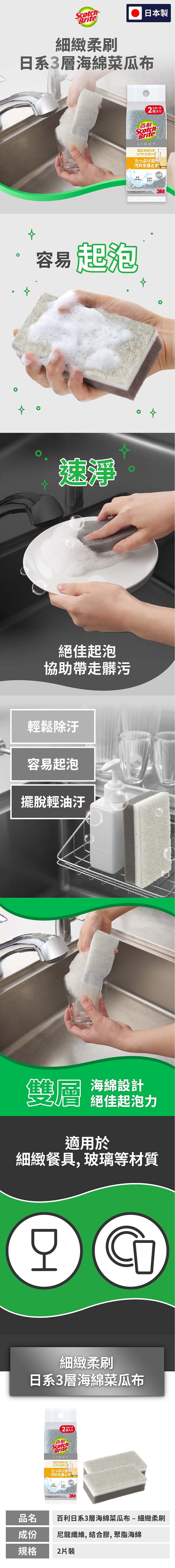 3M 百利 天然木漿棉菜瓜布-好握型-2片裝(3款可選)每組6包/12片★3M 迎新送舊 ★299起免運