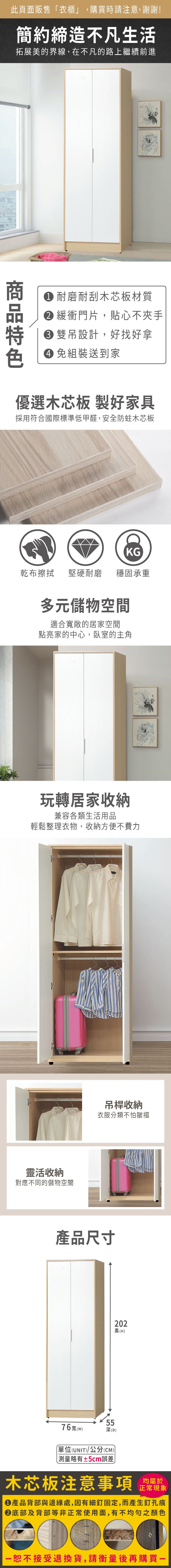 ASSARI-原木雙色2.5尺雙吊衣櫃(寬76x深55x高202cm)