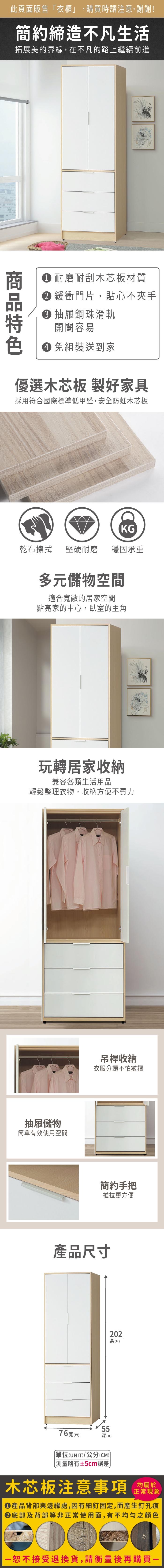 本木-白皙 2.6尺三抽衣櫥2.6尺