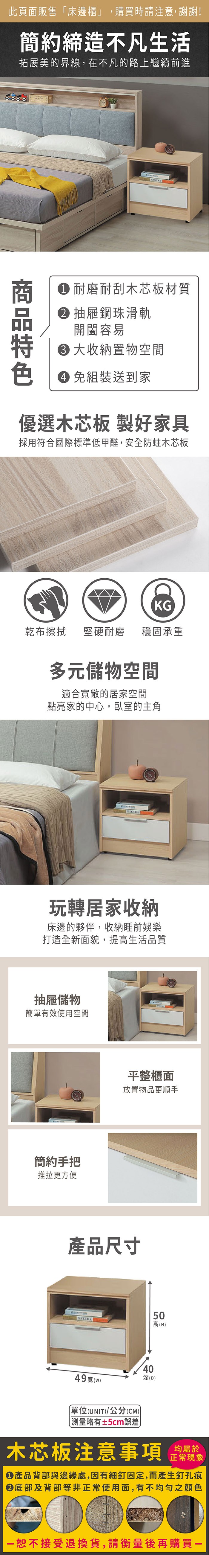 直人木業-UL莫蘭迪奶油風床頭櫃49公分