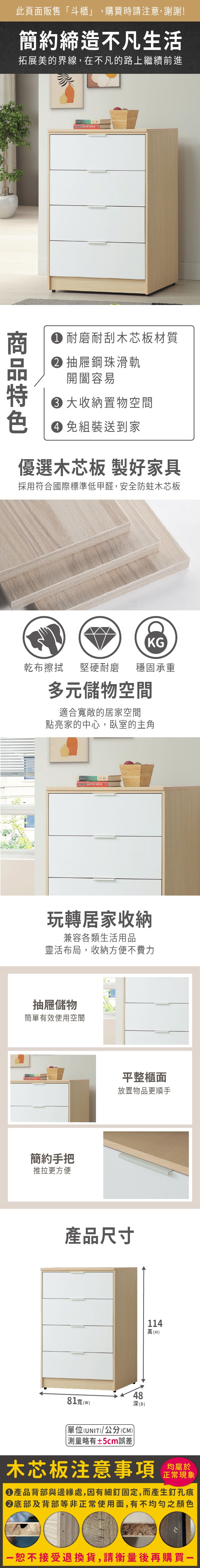 ASSARI-原木雙色2.7尺四斗櫃(寬81x深48x高114cm)