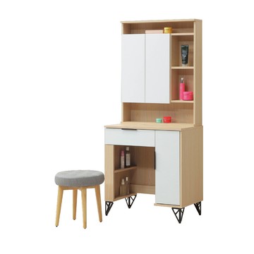 ASSARI-原木雙色鐵腳2.5尺化妝桌椅組(寬76x深40x高166cm)