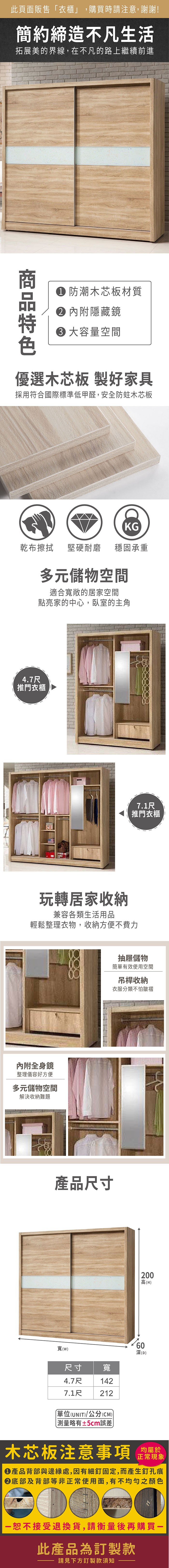 文創集 大亞格7.1尺推門內鏡面衣櫃-213x60x209cm免組